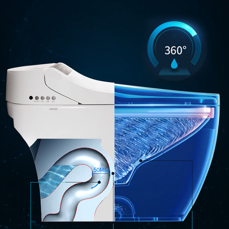 This ARROW smart toilet combines advanced bidet functionality with elegant one-piece ceramic design, featuring automatic cleaning and washdown capabilities in an elongated shape for superior comfort and hygiene.